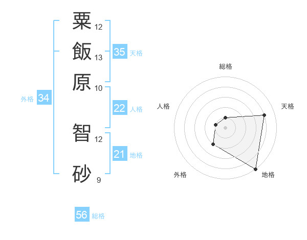 粟飯原 智砂さんの総格は56画の1点!