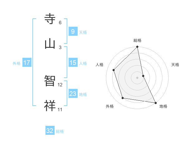寺山 智祥さんの総格は32画の5点!