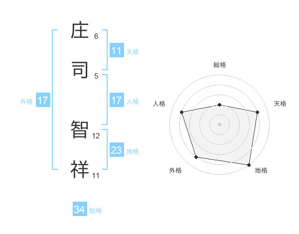 庄司 智祥さんの外格は17画の4点!