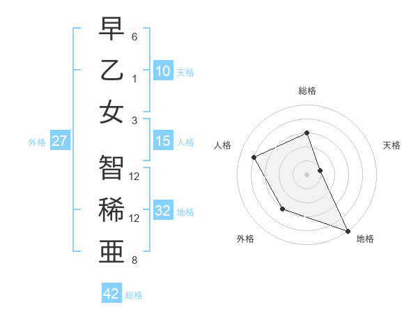 早乙女 智稀亜さんを姓名の画数から五運を鑑定