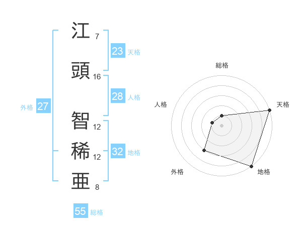 江頭 智稀亜さんの総格は55画の1点!