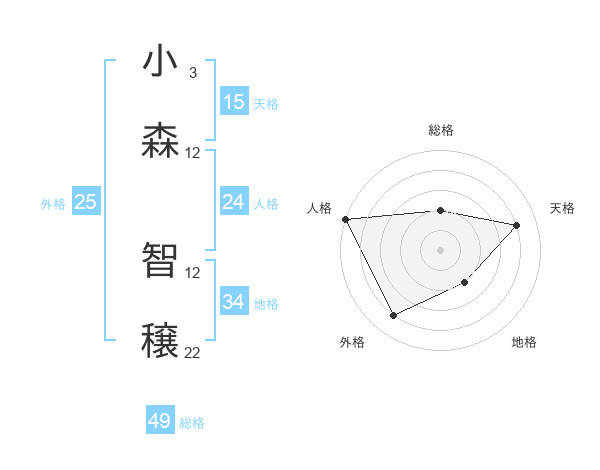 小森 智穣さんの総格は49画の2点!