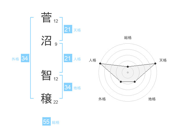 菅沼 智穣さんの天格は21画の5点!
