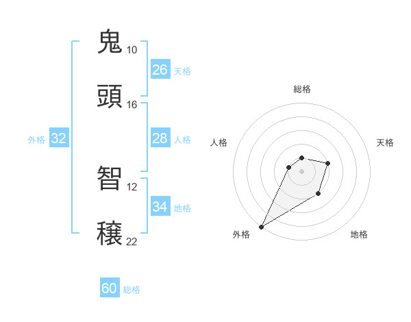 鬼頭 智穣さんの外格は32画の5点!