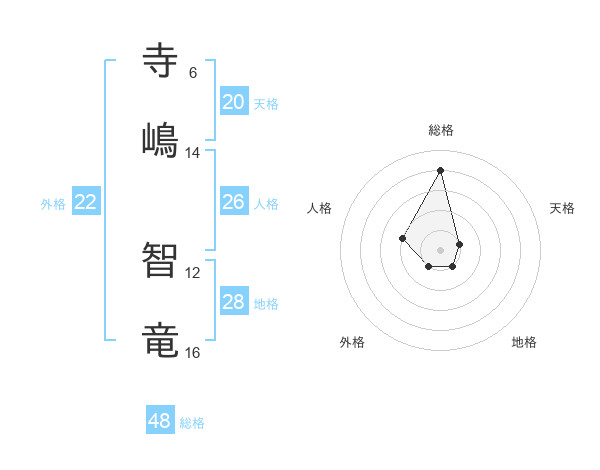 寺嶋 智竜さんを姓名の画数から五運を鑑定