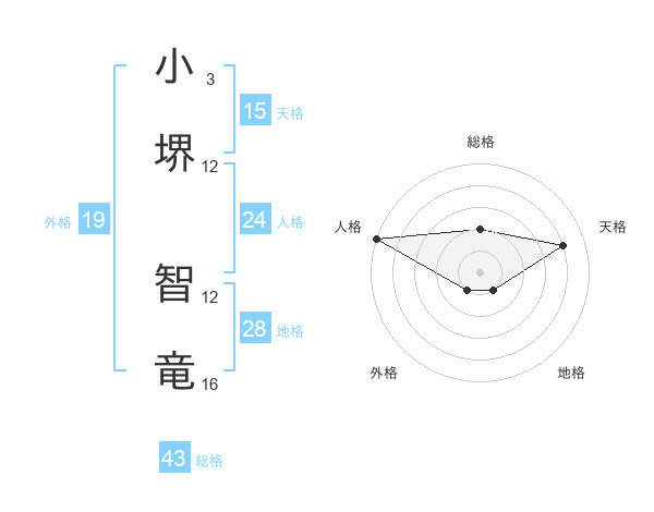 小堺 智竜さんの地格は28画の1点!