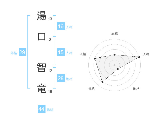 湯口 智竜さんを姓名の画数から五運を鑑定