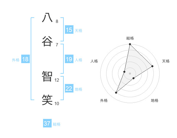 八谷 智笑さんを姓名の画数から五運を鑑定
