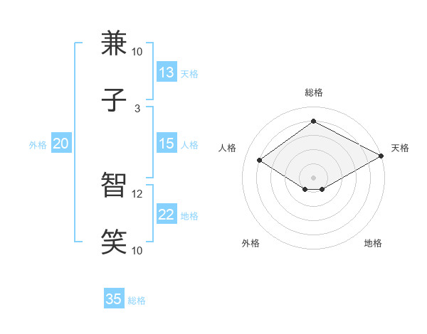 兼子 智笑さんの総格は35画の4点!