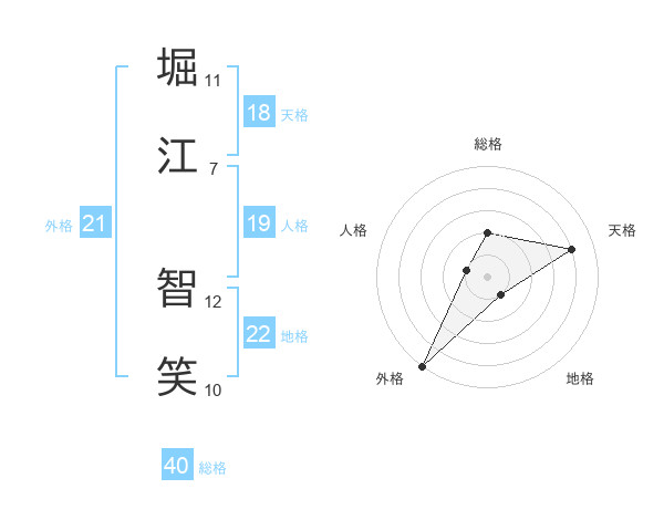 堀江 智笑さんの地格は22画の1点!