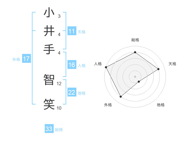 小井手 智笑さんの総格は33画の4点!