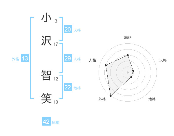 小沢 智笑さんの外格は13画の5点!