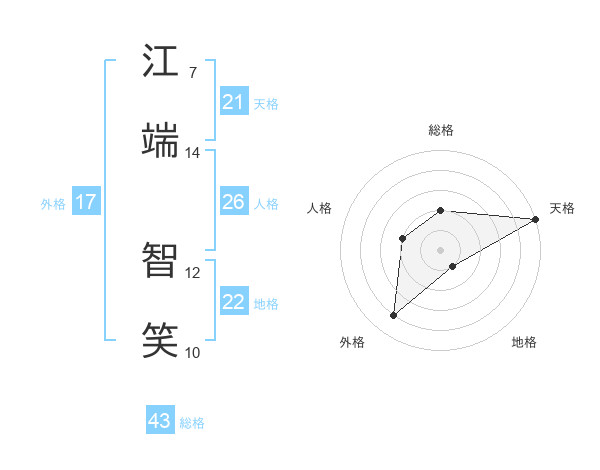 江端 智笑さんの天格は21画の5点!