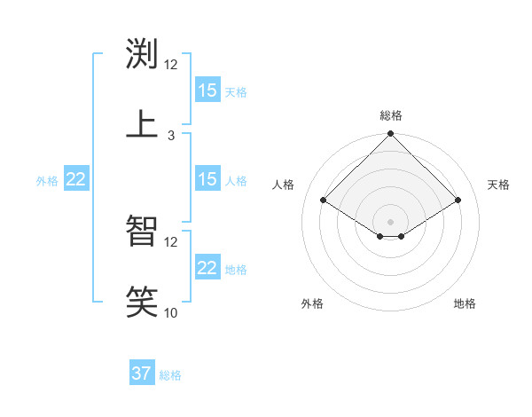 渕上 智笑さんの総格は37画の5点!