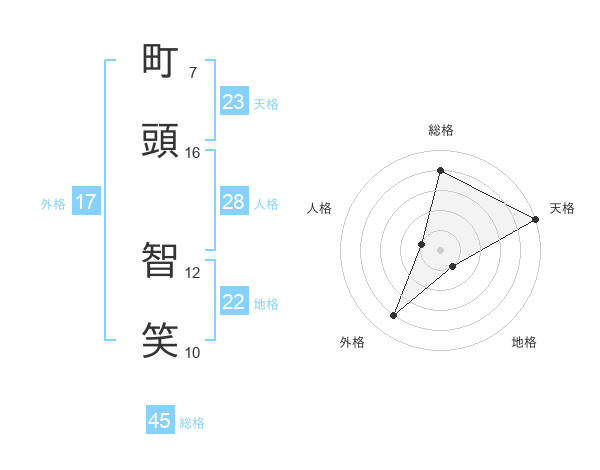 町頭 智笑さんの総格は45画の4点!