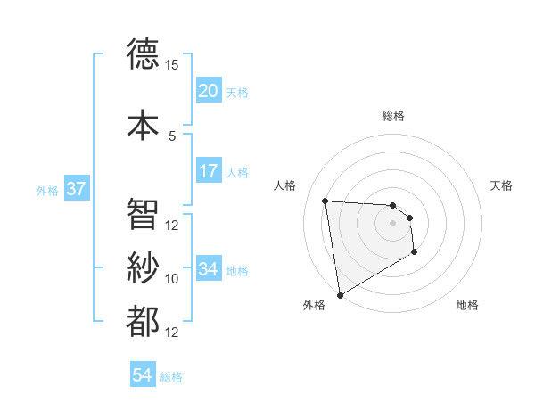 德本 智紗都さんの外格は37画の5点!