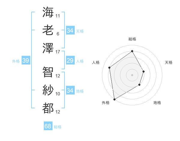 海老澤 智紗都さんの外格は39画の5点!