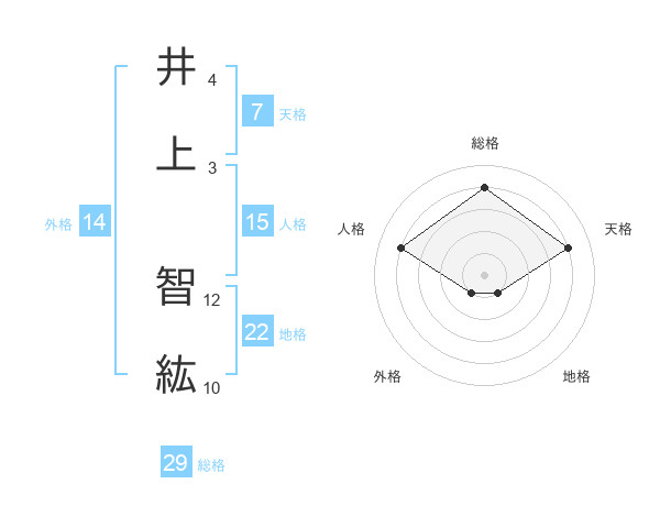 井上 智紘さんの総格は29画の4点!