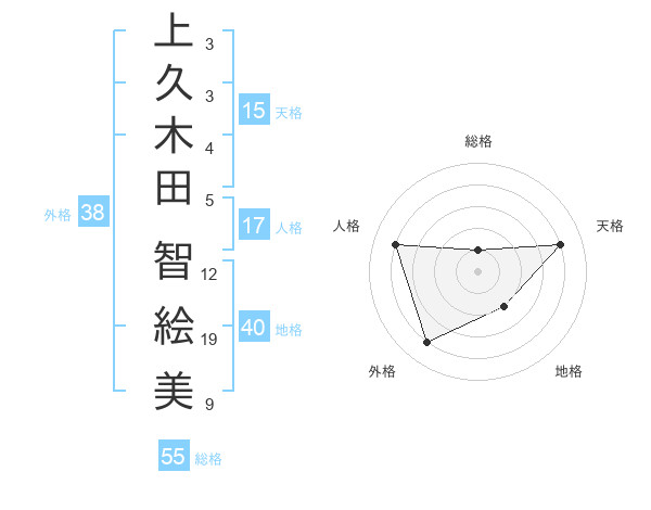 上久木田 智絵美さんを姓名の画数から五運を鑑定