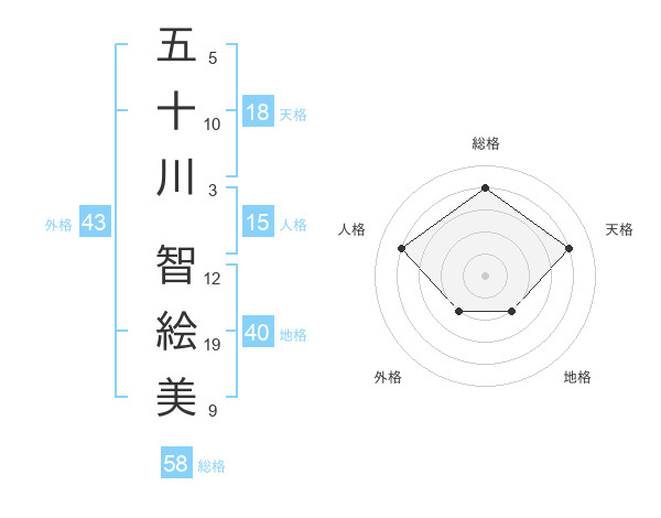 五十川 智絵美さんを姓名の画数から五運を鑑定