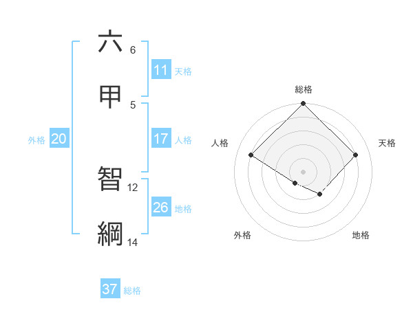 六甲 智綱さんを姓名の画数から五運を鑑定