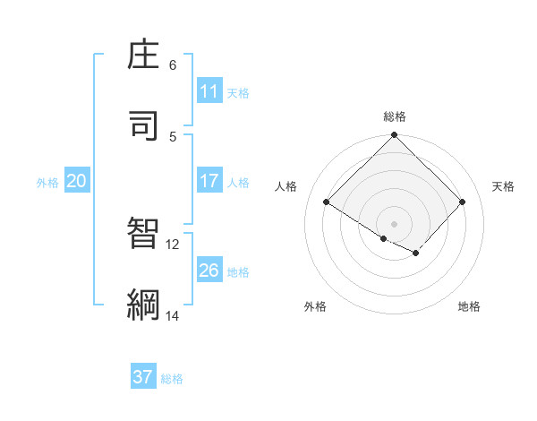 庄司 智綱さんの総格は37画の5点!