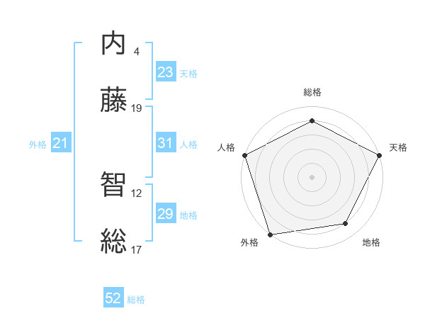 内藤 智総さんの総格は52画の4点!