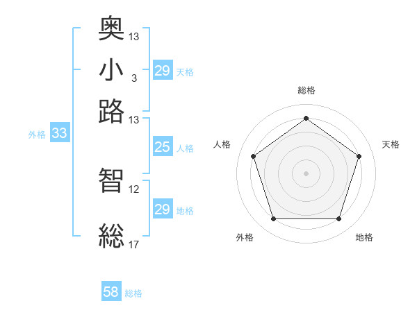 奥小路 智総さんの天格は29画の4点!