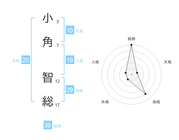 小角 智総さんの総格は39画の5点!