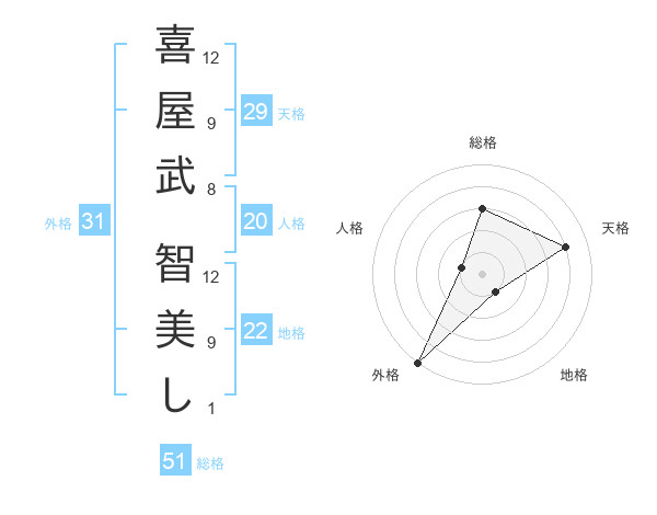 喜屋武 智美しさんを姓名の画数から五運を鑑定