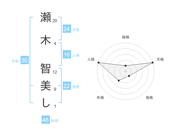 瀬木 智美しさんの天格は24画の5点!