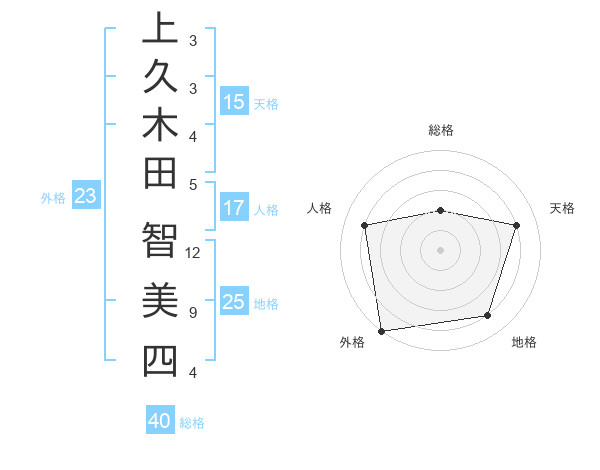 上久木田 智美四さんの外格は23画の5点!