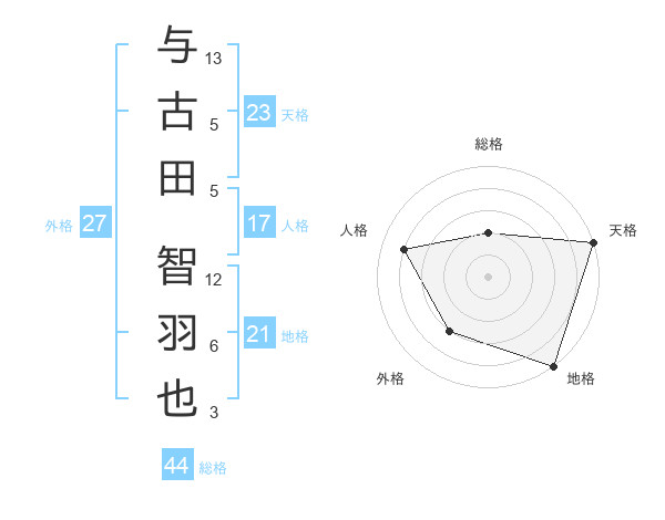 与古田 智羽也さんを姓名の画数から五運を鑑定