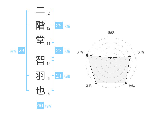 二階堂 智羽也さんの外格は23画の5点!