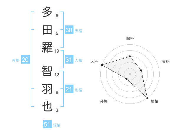 多田羅 智羽也さんの総格は51画の3点!