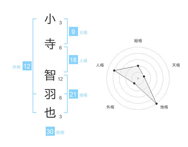小寺 智羽也さんを姓名の画数から五運を鑑定