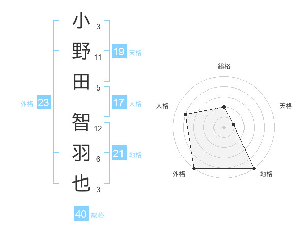 小野田 智羽也さんを姓名の画数から五運を鑑定