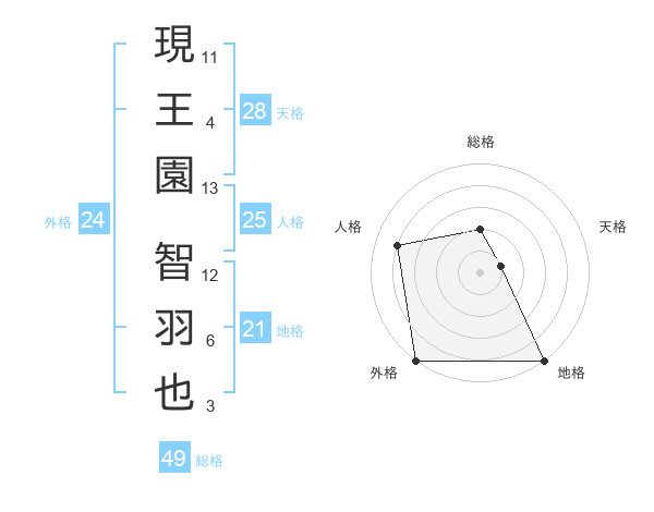 現王園 智羽也さんを姓名の画数から五運を鑑定