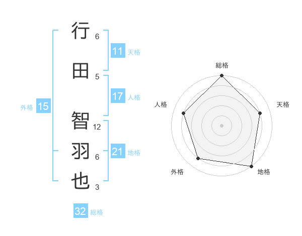 行田 智羽也さんを姓名の画数から五運を鑑定