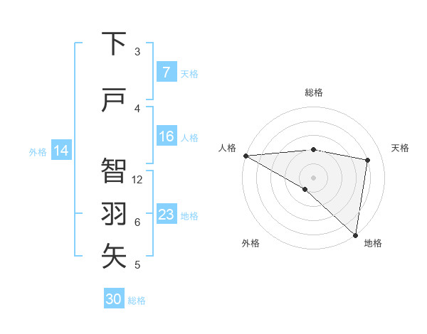 下戸 智羽矢さんの総格は30画の2点!