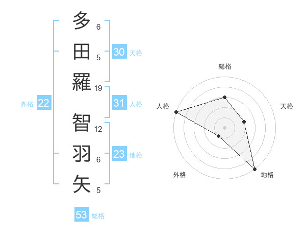 多田羅 智羽矢さんの総格は53画の3点!
