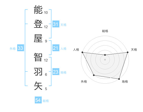 能登屋 智羽矢さんを姓名の画数から五運を鑑定