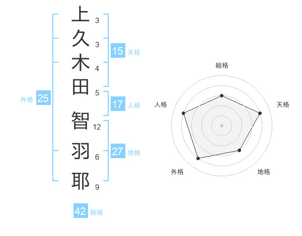 上久木田 智羽耶さんを姓名の画数から五運を鑑定