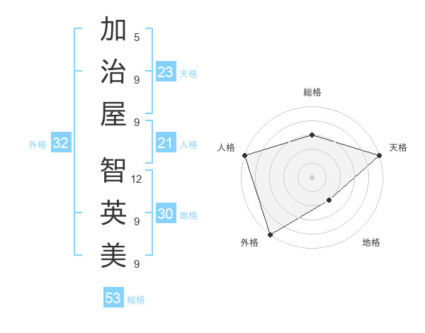 加治屋 智英美さんを姓名の画数から五運を鑑定