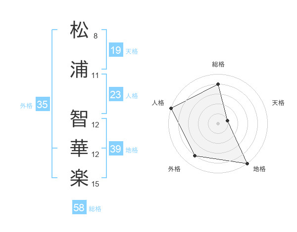 松浦 智華楽さんを姓名の画数から五運を鑑定