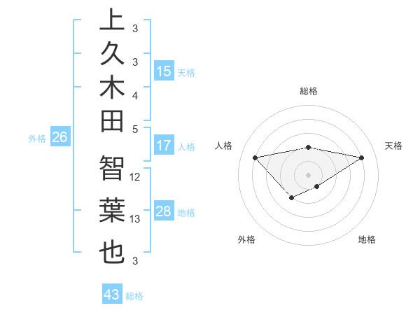 上久木田 智葉也さんを姓名の画数から五運を鑑定