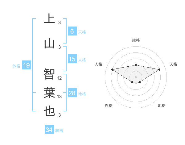 上山 智葉也さんを姓名の画数から五運を鑑定