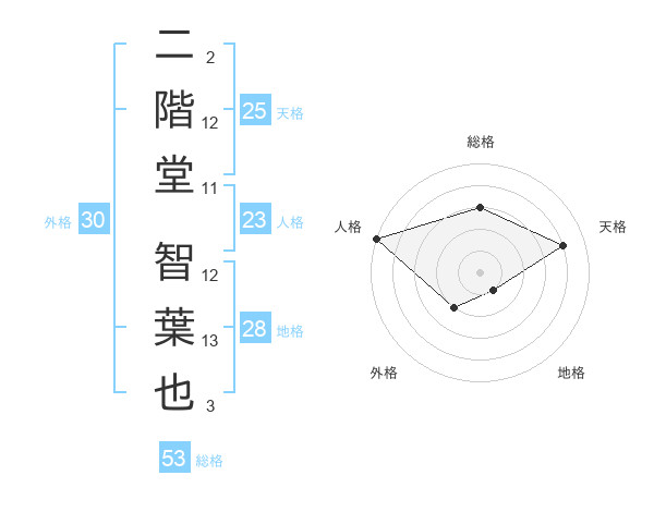 二階堂 智葉也さんを姓名の画数から五運を鑑定