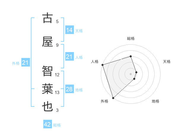 古屋 智葉也さんを姓名の画数から五運を鑑定