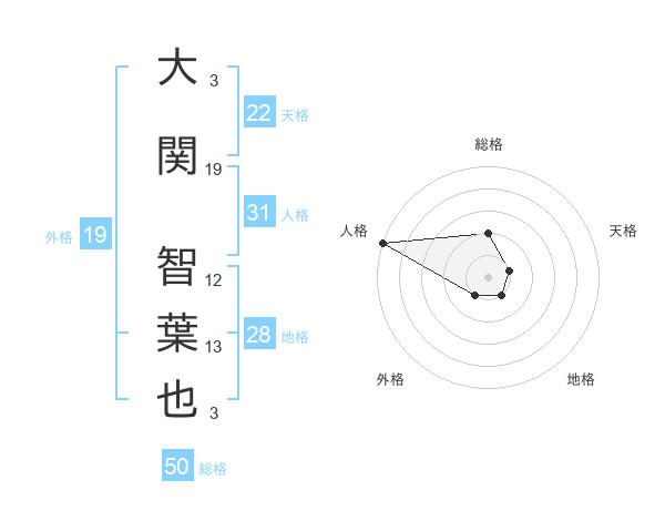 大関 智葉也さんを姓名の画数から五運を鑑定